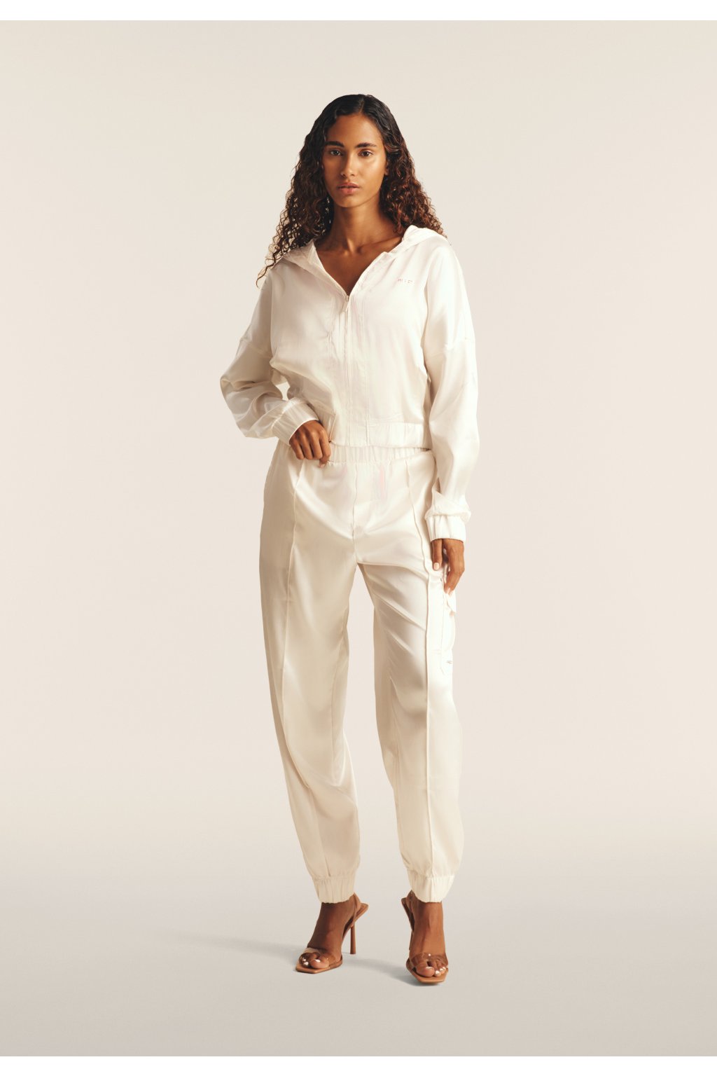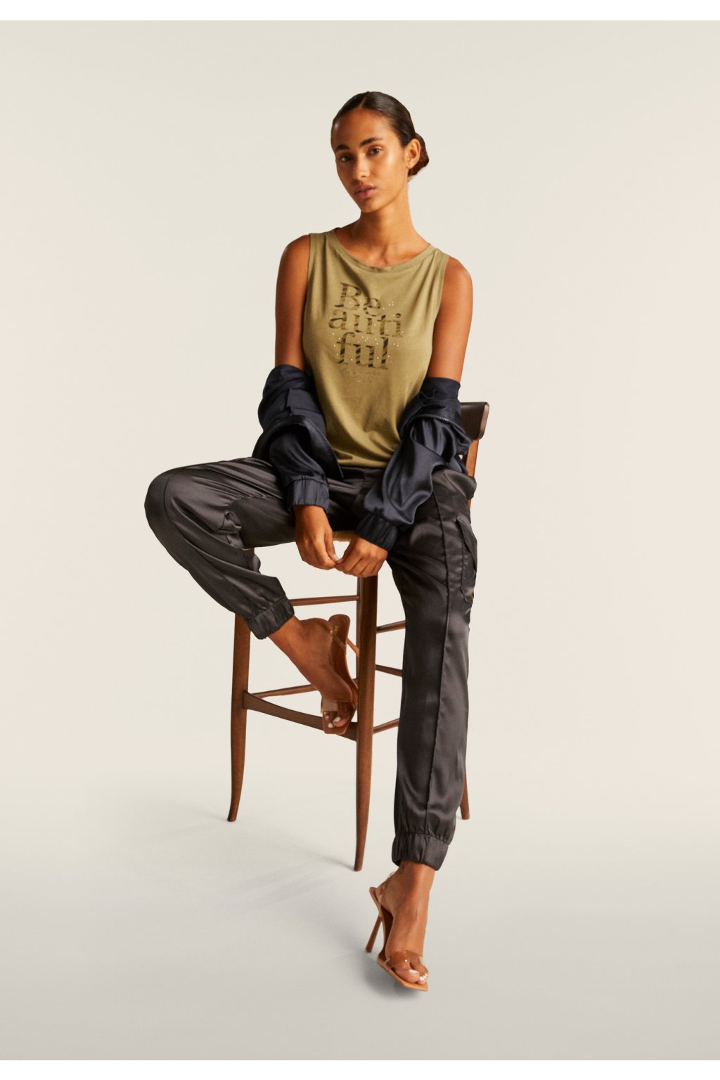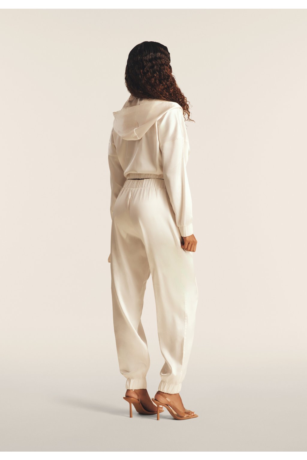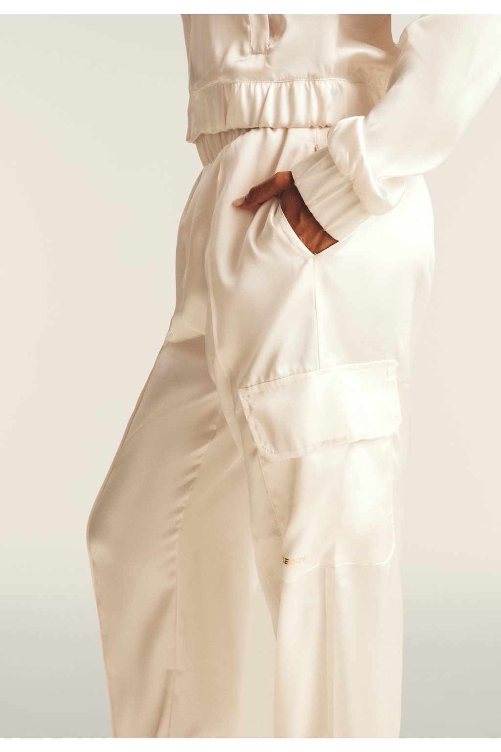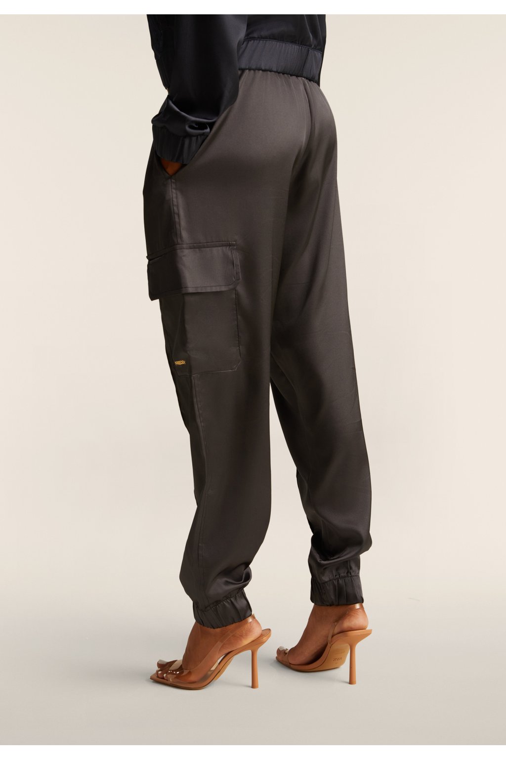 Cargo nohavice s hodvábnym vzhľadom a elastickým spodným lemom.