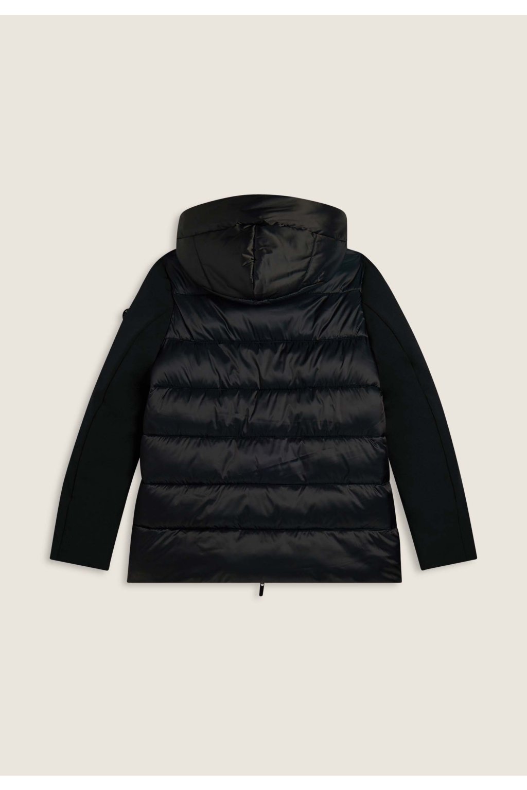 Sofistikovaný dizajn a optimálna ochrana sa spájajú v tejto stredne dlhej páperovej bunde v klasickom strihu (regular fit). Exteriér kombinuje hladké matné tkaniny na prednej strane a rukávoch s lesklými prešívanými prvkami na chrbte. Spolu s kapucňou tak vytvára dynamický a moderný vzhľad.