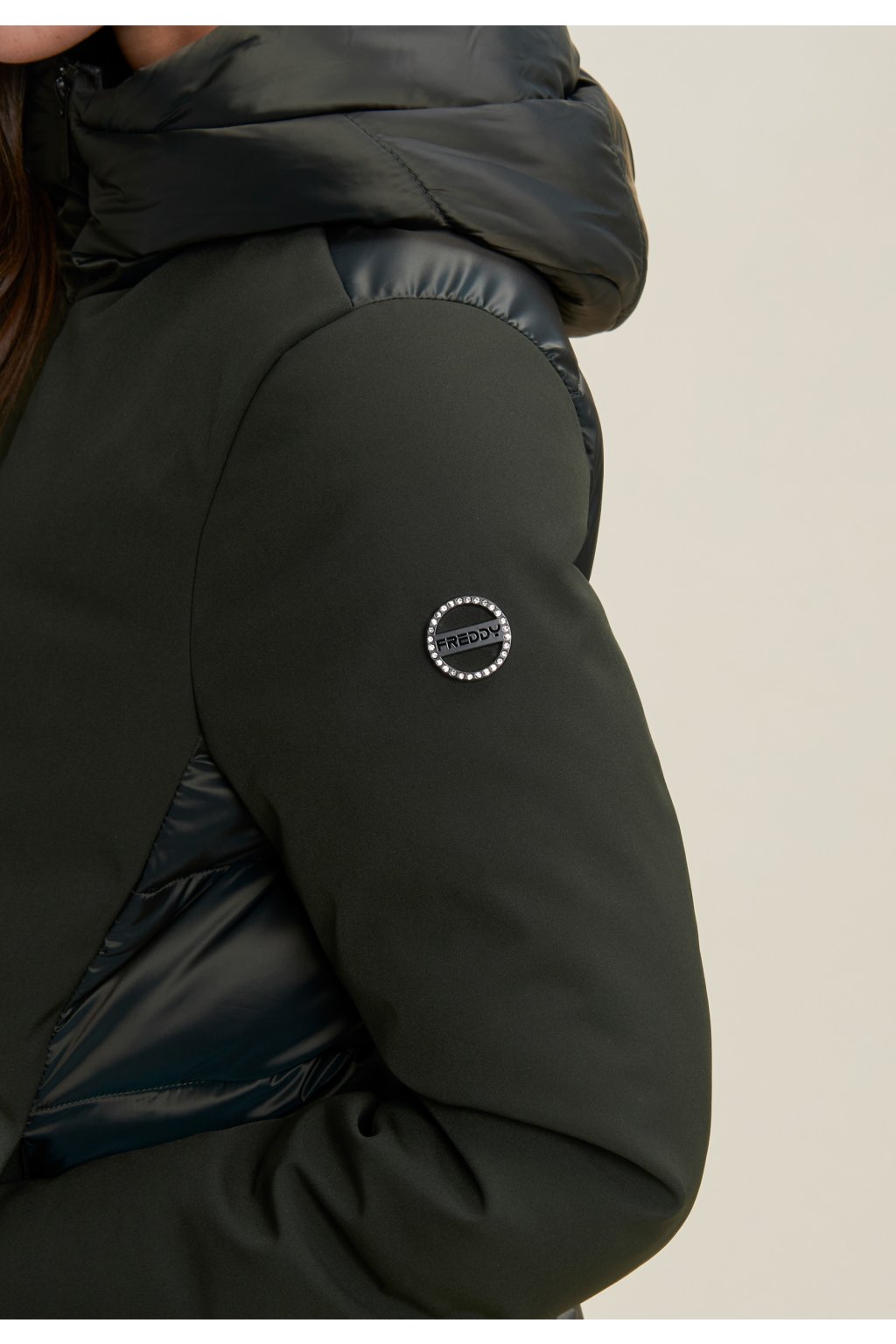 Dámska stredne dlhá páperová bunda s lesklými a matnými prvkami, F25WPJJ7