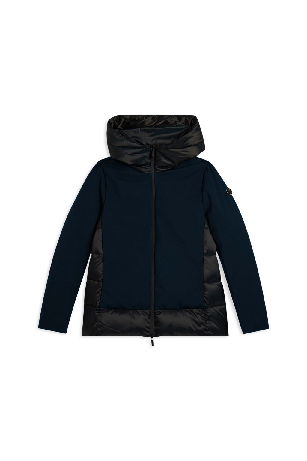 Women's medium-length down jacket with glossy and matt inserts (Farba Dark Sapphire, Veľkosť L)