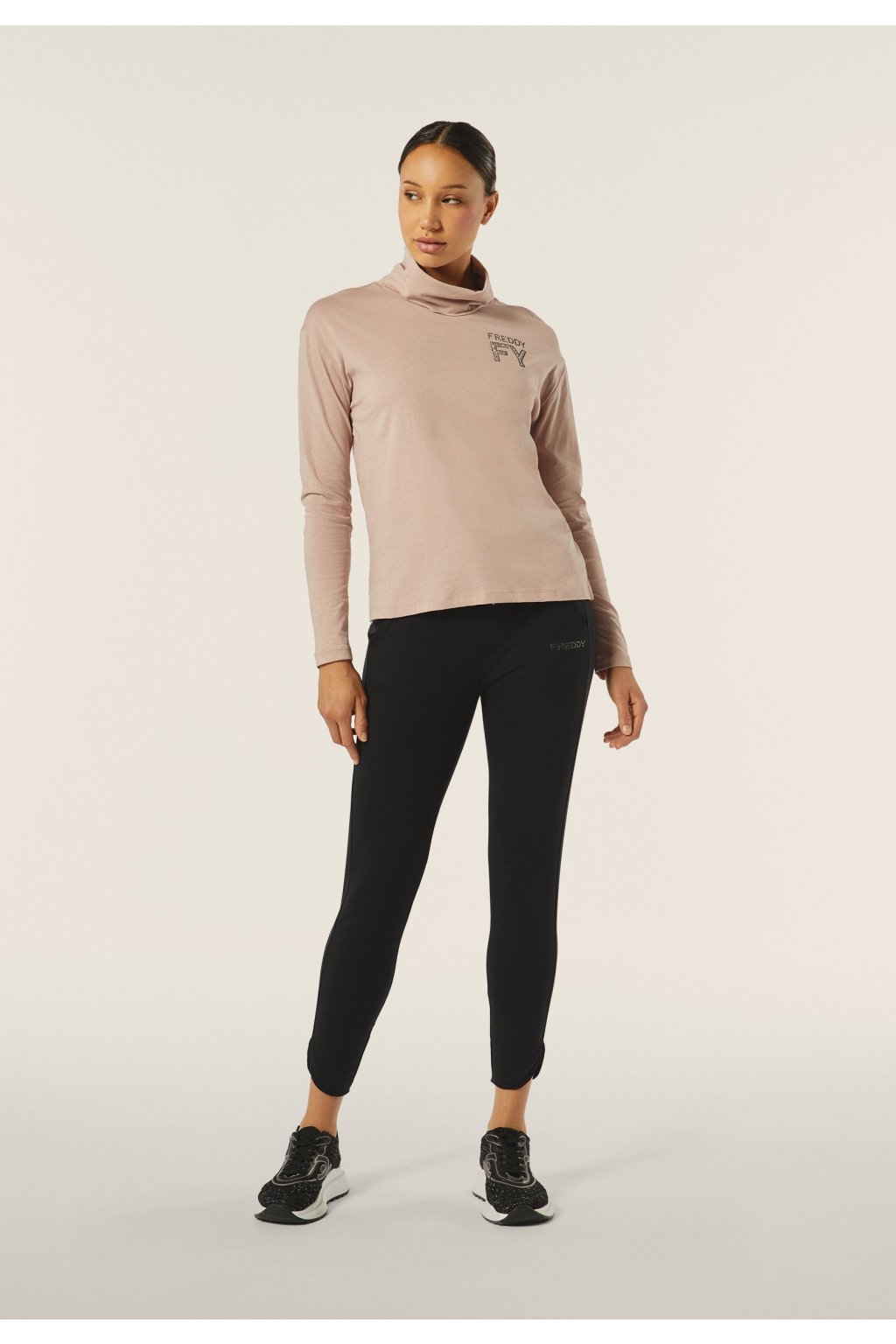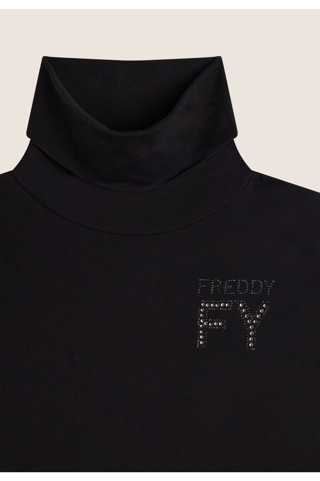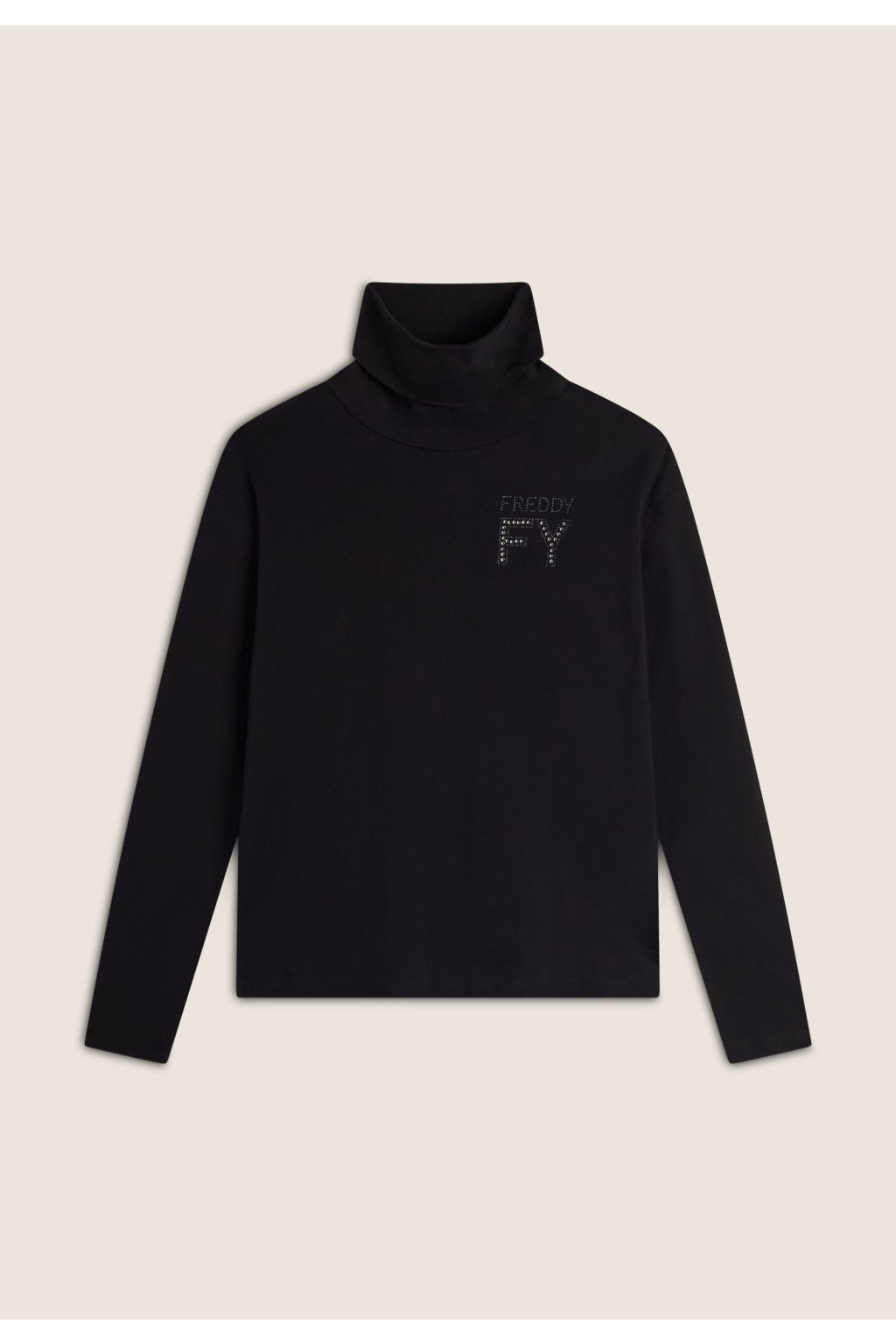 FREDDY Čierne rolákové dámske tričko s dlhým rukávom s logom FY, zdobené kamienkami, F4WCXT4, N