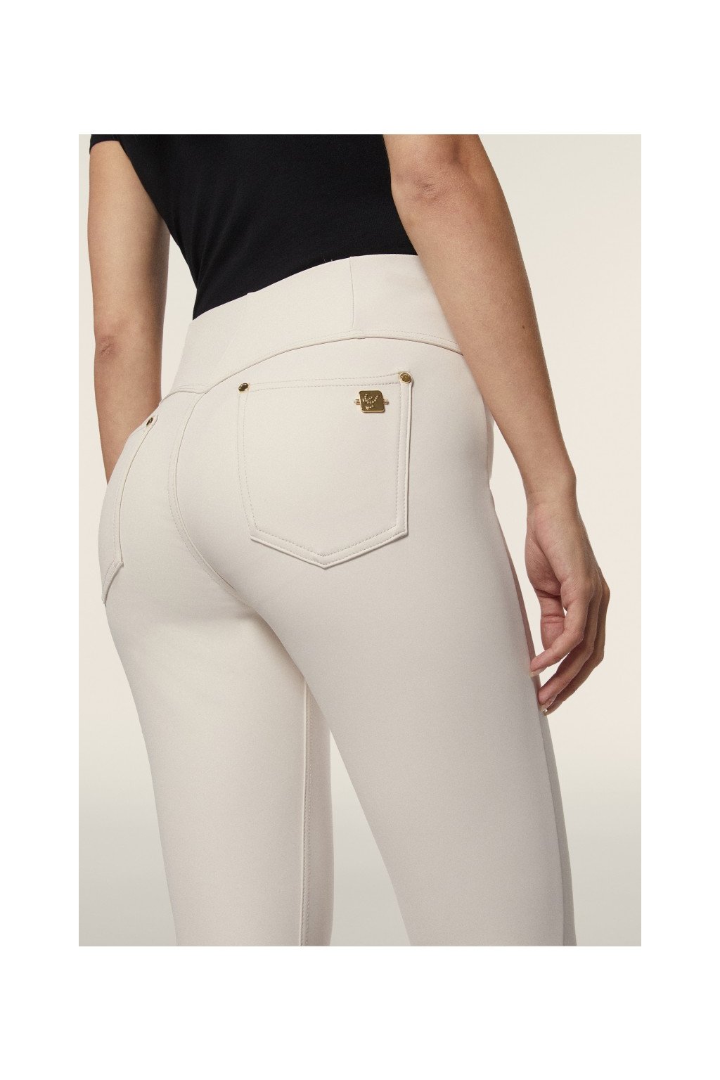 N.O.W.® nohavice koženkové, vysoký pás bez zapínania. Produkt má ozajstné predné aj zadné vrecká. Zloženie: 72% Polyester, 13% Elastan, 15% Polyuretán. Dostupný vo viacerých farbách.