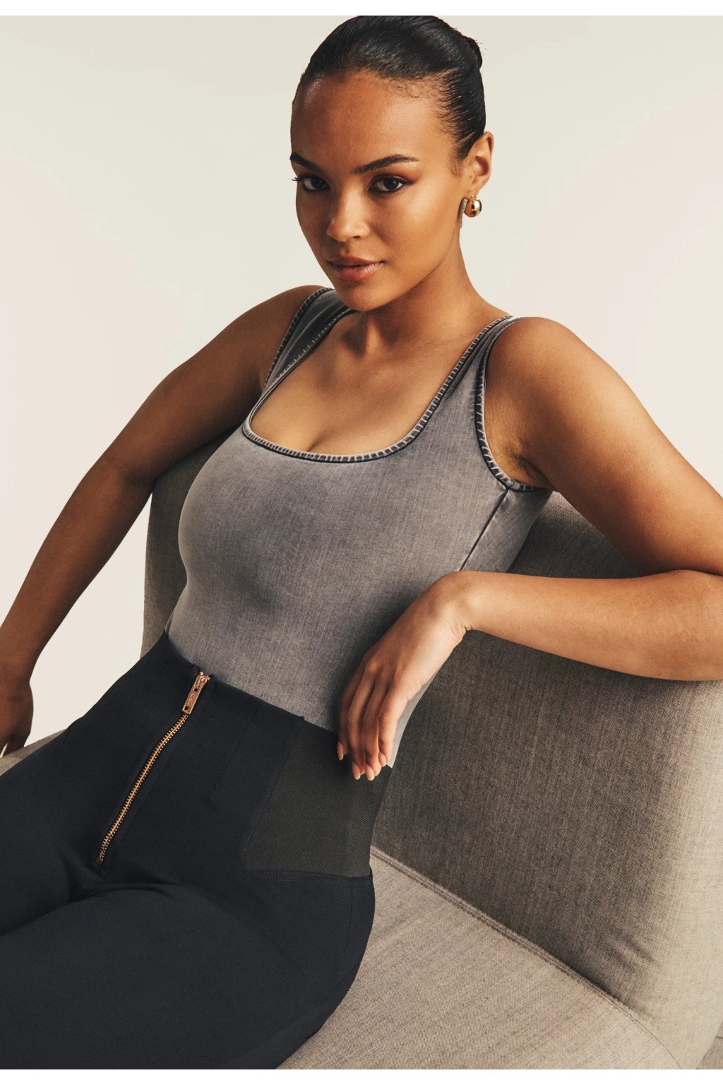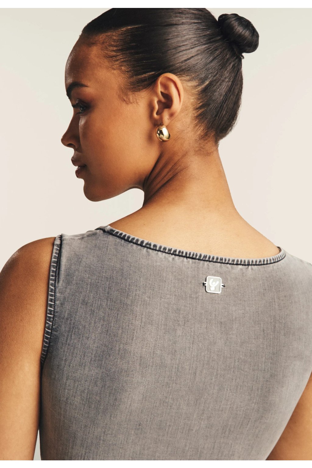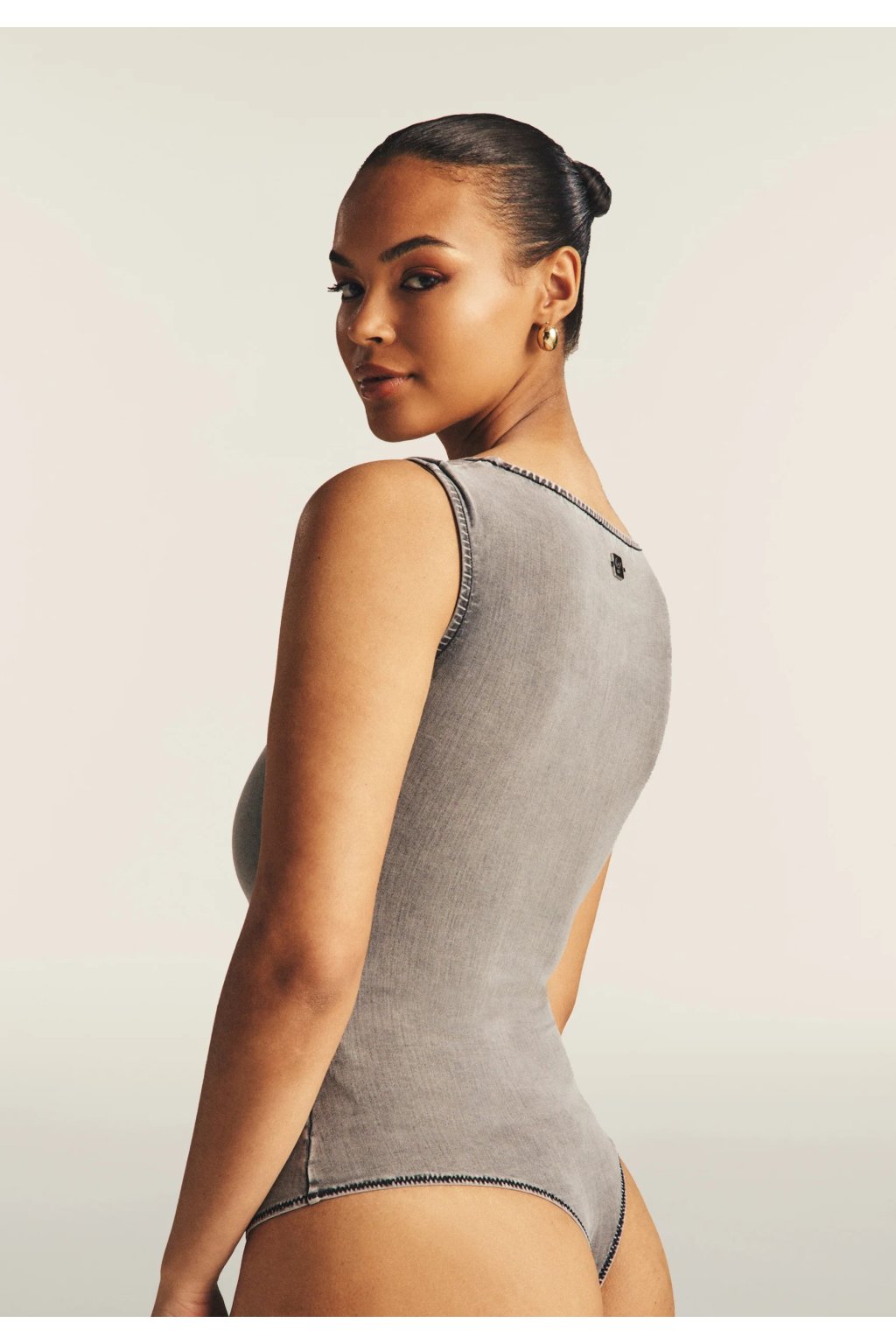 Tento priliehavý overal je vyrobený z TENCEL™ Lyocell dresu, ekologického a biologicky rozložiteľného vlákna, ktoré je jemné na pokožke a má charakteristický denimový efekt. Brazílska rezba, široký štvorcový výstrih a bezrukávový dizajn zvýrazňujú línie tela. Malá smaltovaná etiketa s logom na zadnej strane pridáva exkluzívny vzhľad. Zapínanie na patentky pre pohodlie.