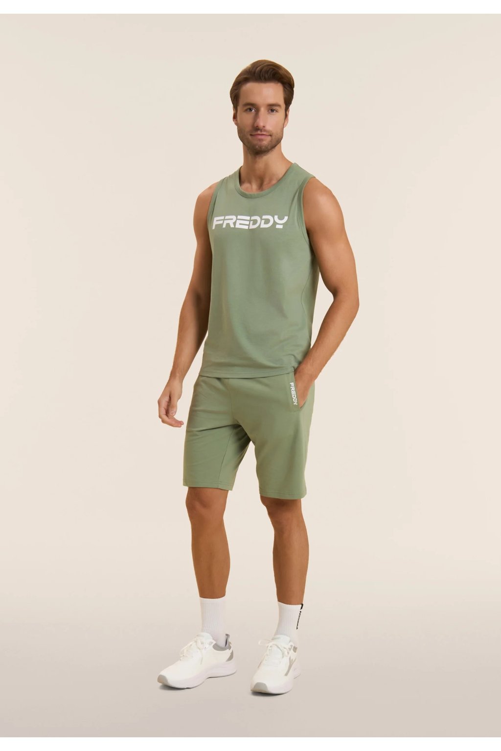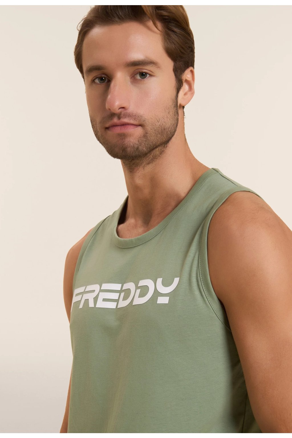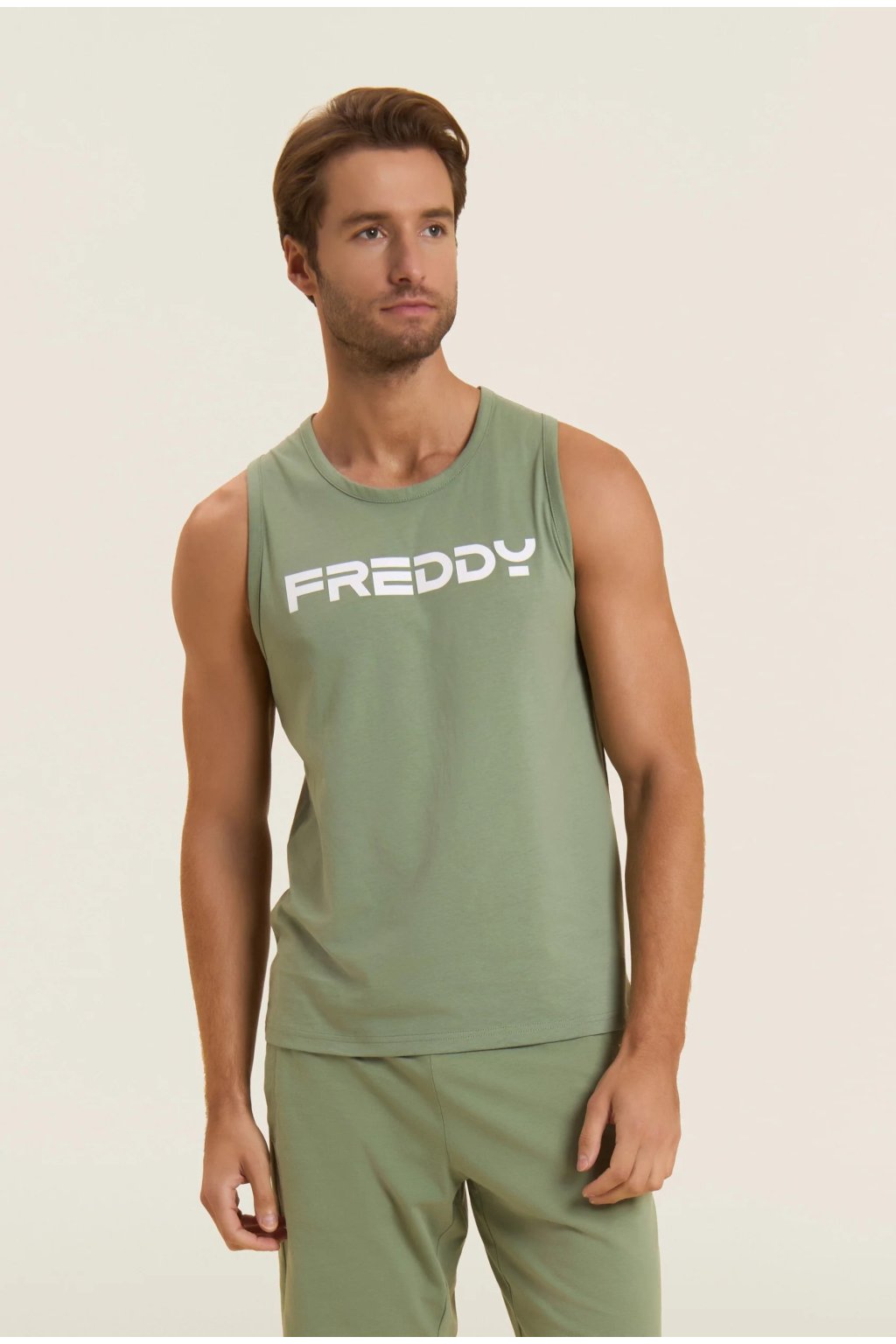 Čistý vzhľad odevu podčiarkuje logo FREDDY s matným pogumovaným efektom, umiestnené v strede hrudníka. Tento kúsok nesmie chýbať vo vašom letnom šatníku – je ideálny na horúce dni aj chvíle aktívneho oddychu.