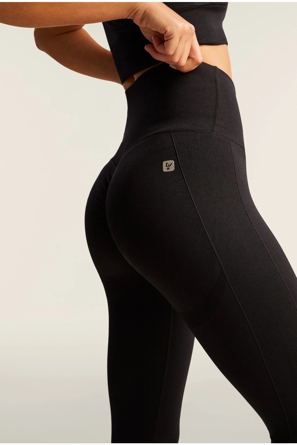 Tieto bezošvé 7/8 legíny z formujúceho materiálu sa prirodzene prispôsobia vašim krivkám a poskytnú vám maximálne pohodlie spolu s úplným krytím (squat-proof), zatiaľ čo strategicky umiestnené rebrované detaily v páse, pod zadočkom a na nohách zvyšujú flexibilitu pohybu a nenápadné logo Freddy na boku dotvára ich štýlový a funkčný dizajn.