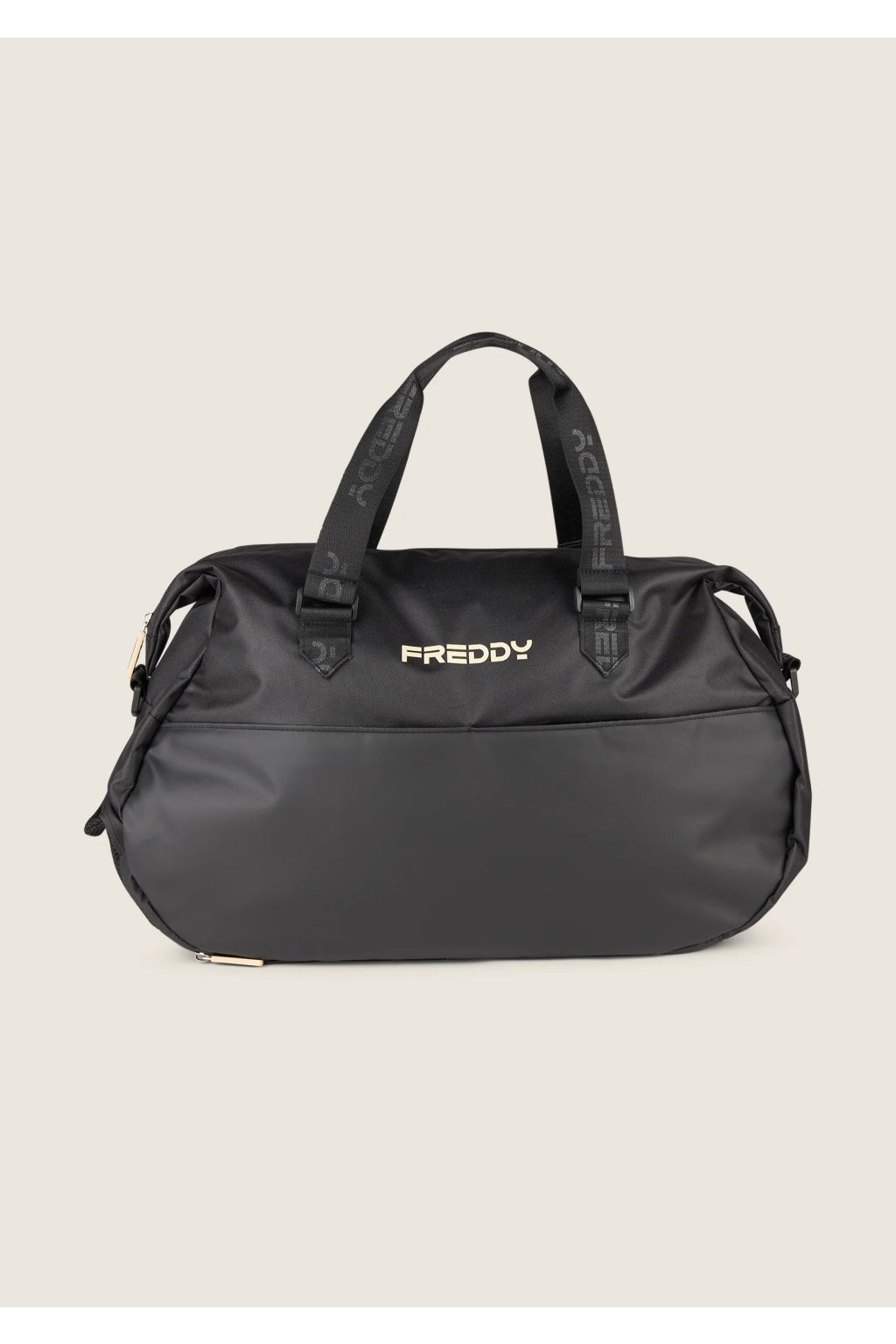 Táto čierna športová taška z recyklovaného polyesteru s béžovými detailmi kombinuje funkčnosť so štýlom a vďaka nastaviteľnému odnímateľnému popruhu, praktickému vrecku na topánky a množstvu vnútorných i vonkajších vreciek ponúka maximálny komfort pre vaše fitness aktivity aj voľný čas (rozmery: 54 x 22,5 x 32 cm).