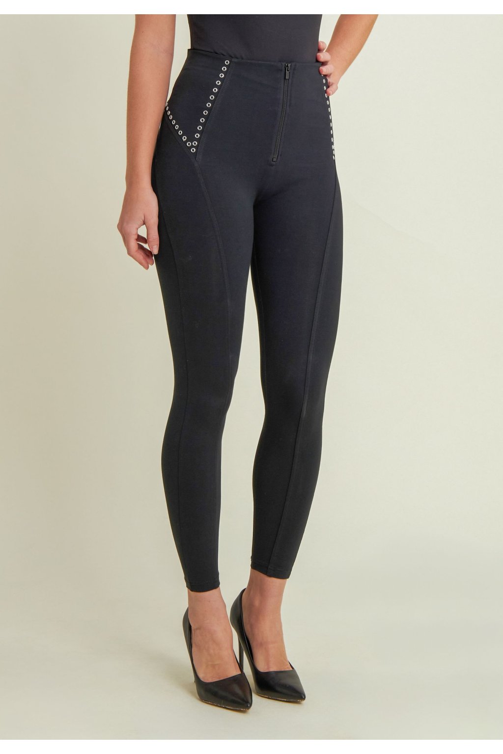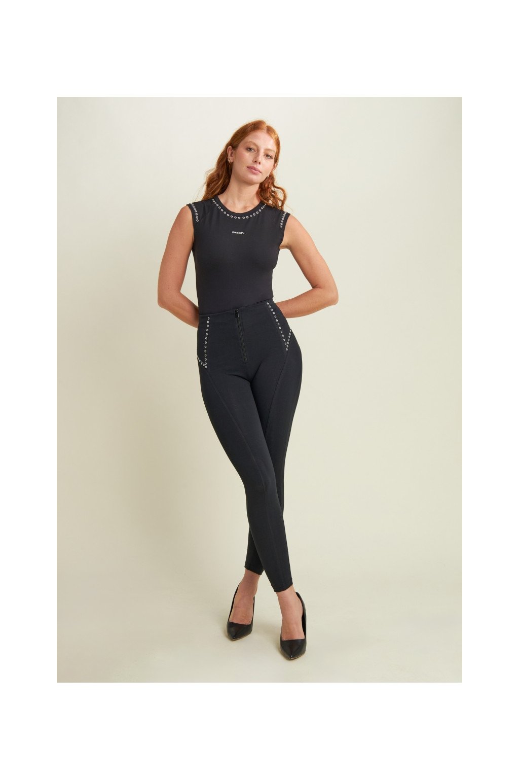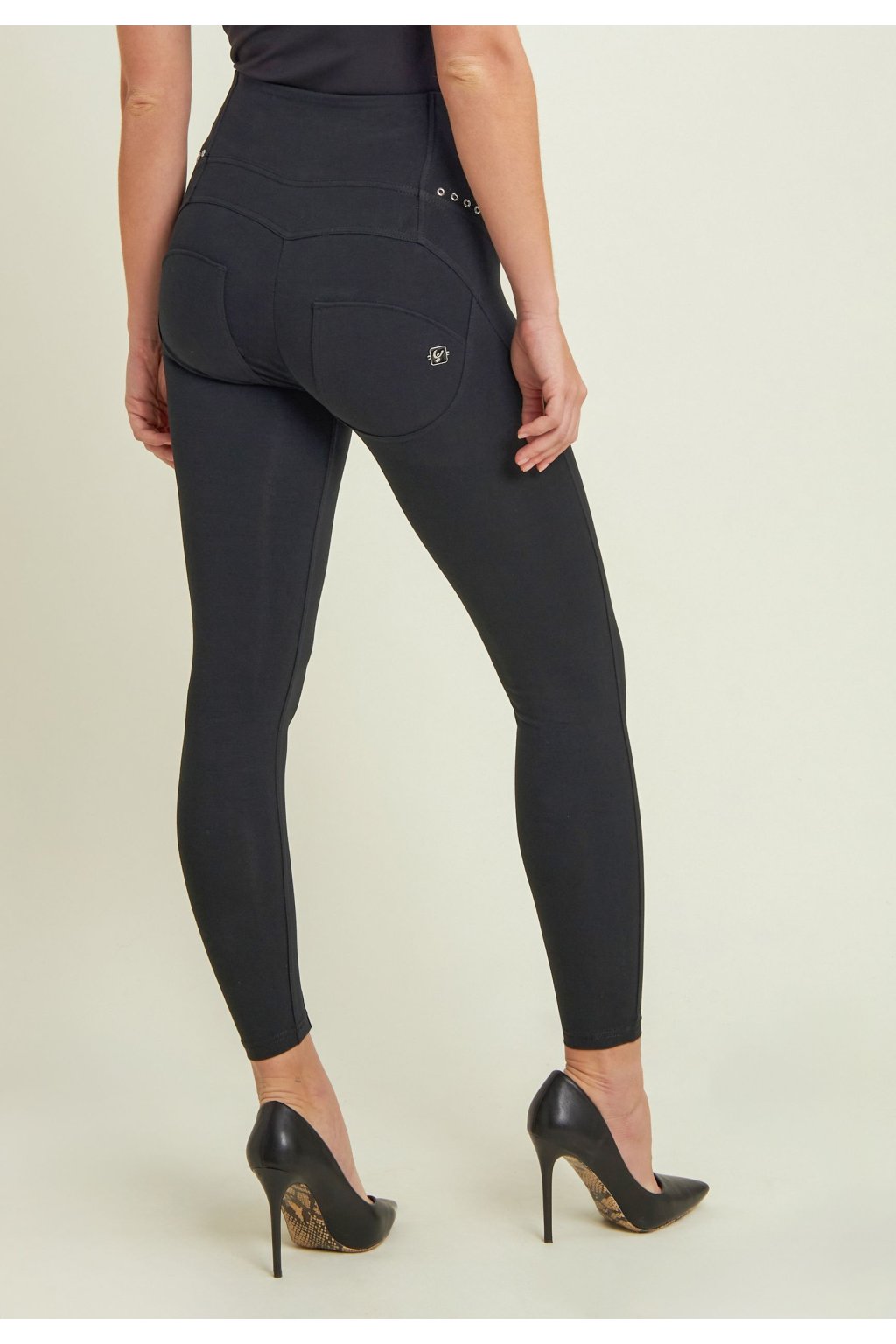 WR.UP® 7/8 Čierne bavlnené nohavice s vysokým pásom a kovovými cvočkami RE(MOVE). Zloženie: 81%Bavlna 19%Elastan