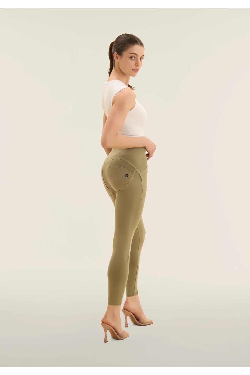 High waist WR.UP trousers with 7/8 length and worn-in effect (Farba Aloe, Veľkosť L)
