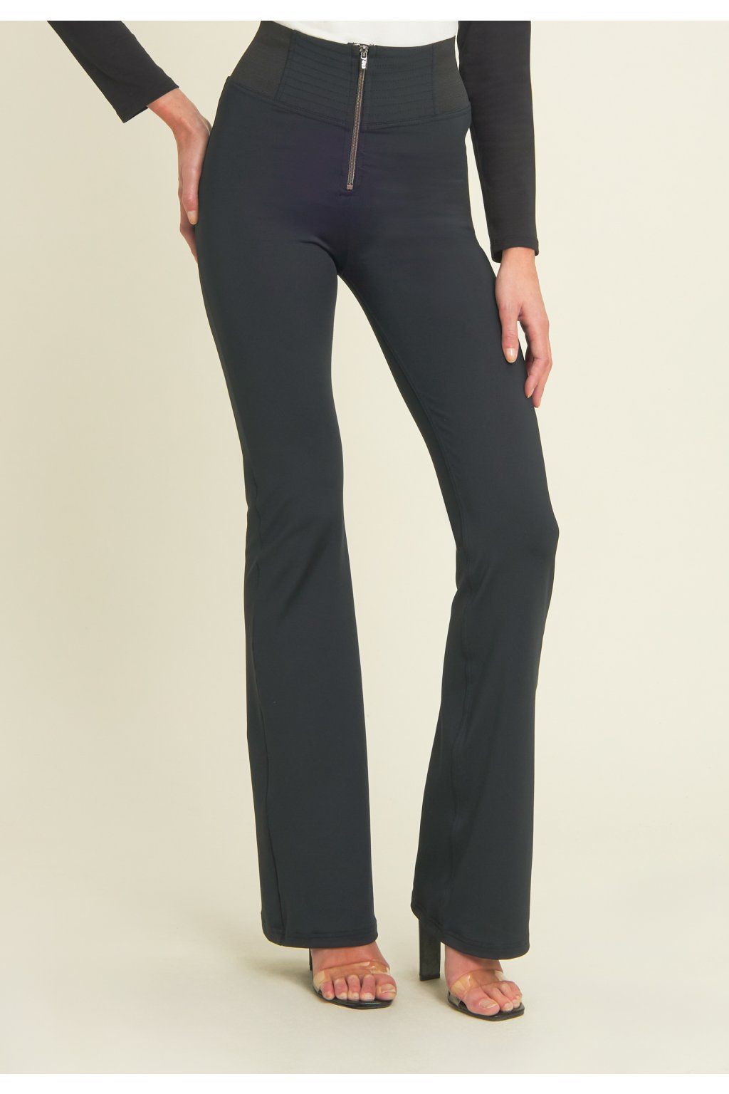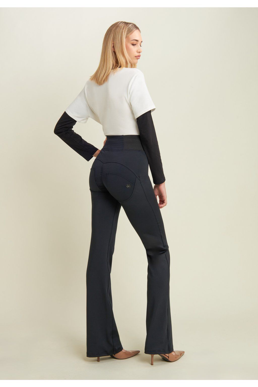 Úzke push-up nohavice WR.UP® s rozšíreným spodným dielom vyrobené z priedušnej výkonnostnej látky D.I.W.O.®. Ozdobné prešívanie v páse a bočné vsadky z elastického žakáru zvýrazňujú siluetu a dodávajú jej eleganciu. Vysoký pás s centrálnym zipsom.