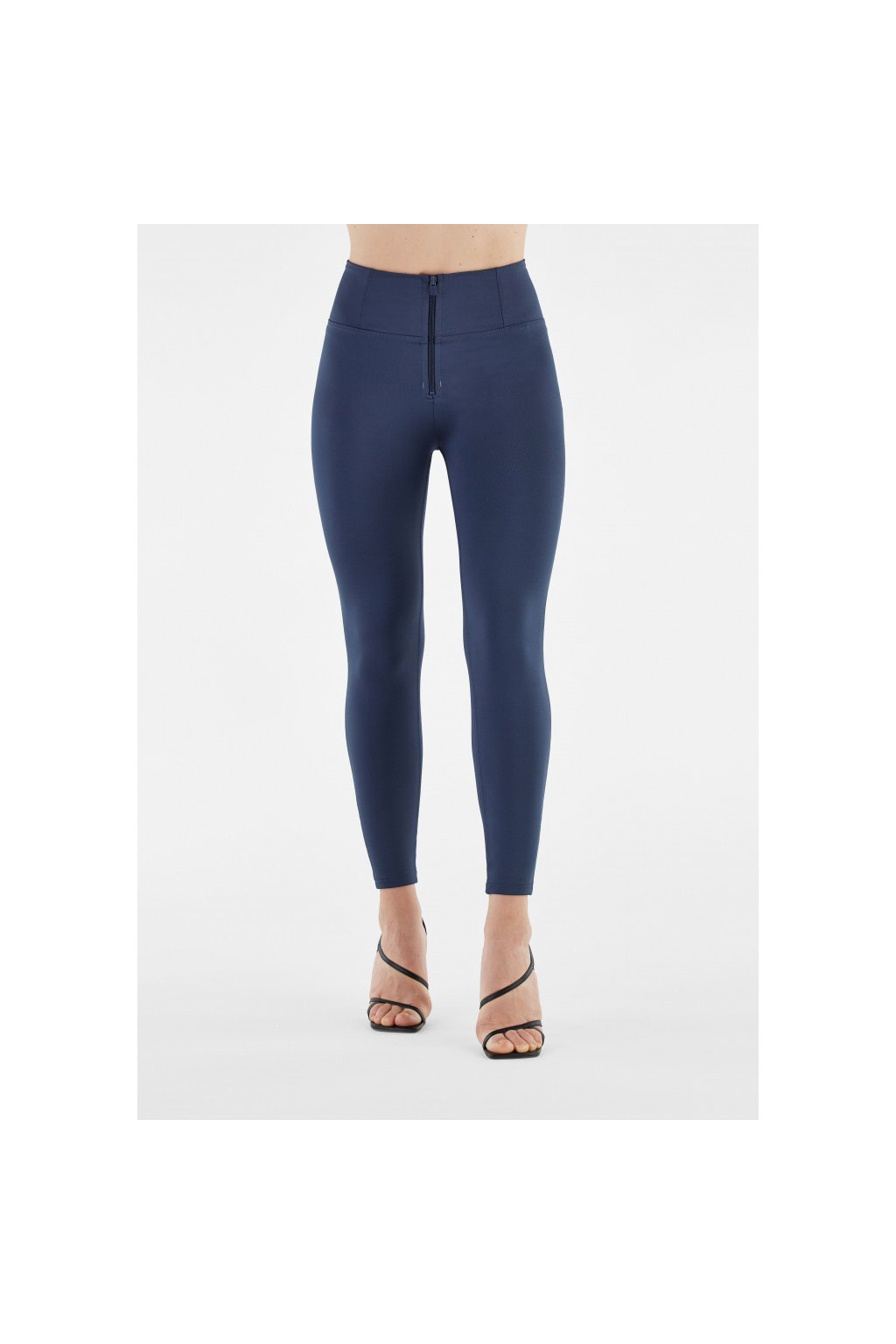 Push-up nohavice s vysokým pásom z radu WR.UP® z ekologickej priedušnej látky D.I.W.O.® získanej z plastových fliaš premenených na vlákna, ktoré ponúkajú väčšiu priedušnosť a podporujú termoreguláciu pokožky. Sú ideálne na skrášlenie každého okamihu dňa bez toho, aby sa vzdali slobody pohybu. Majú vysoký pás zapínaný predným zipsom a bežnú dĺžku. Tvary tela zvýraznené vysokým pásom tvarujúcim pás a priľnavosťou superskinny strihu sú ešte vylepšené tvarovacím efektom technológie WR.UP® patentovanej Freddym, ktorá zvýrazňuje siluetu vďaka špeciálnemu systému vložiek. a prešívanie, ktoré zvýrazňuje tvary a poskytuje podporu pre krivky.
