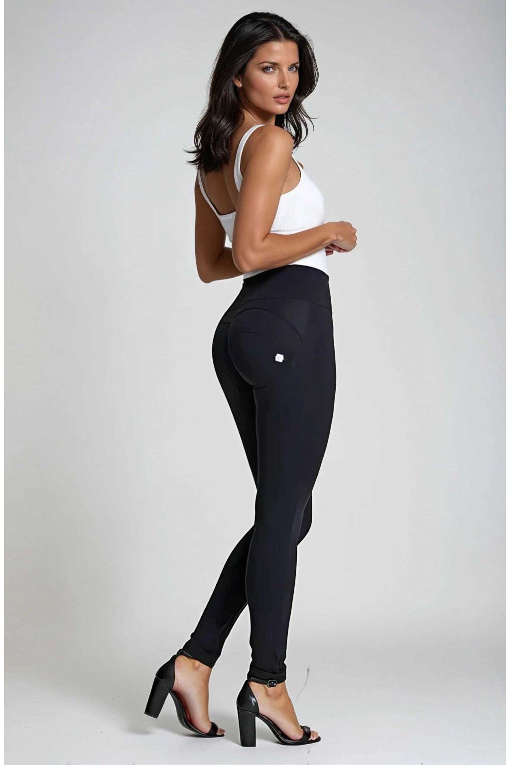 Priedušné nohavice z bioaktívnej tkaniny push-up s vysokým pásom. Majú predné zapínanie na zips, nohavice normálnej dĺžky a úzky strih, ktorý príjemne obopína siluetu tela. Tento odev spája Freddyho inováciu, ktorá zvýrazňuje vašu ženskosť vďaka kombinácii tkaniny D.I.W.O.® Plus, vyrobenej z recyklovaných materiálov a ošetrenej Tana® Care Bio, ktorá podporuje tepelnú reguláciu a prispieva k zlepšeniu vzhľadu pokožky a ponúkanému príjemnému tvarovaciemu efektu. technológiou WR.UP® patentovanou Freddym, ktorá zvýrazňuje postavu a dodáva modelačný a liftingový efekt pomocou unikátneho systému vsadzovania a prešívania. Zloženie: 77% Polyamid 23% Elastan