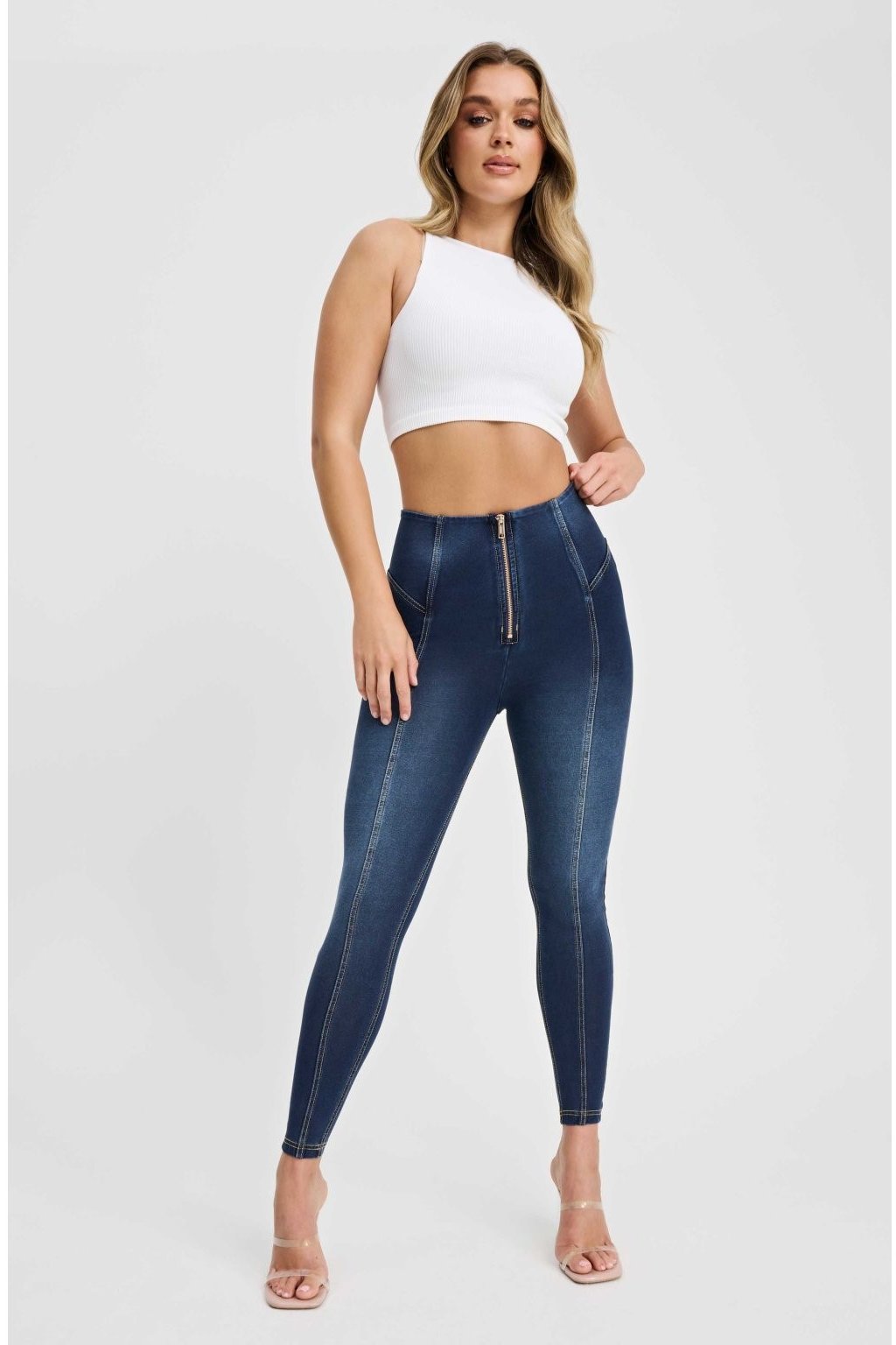 WR.UP® denim 7/8 nohavice so stredovým prešívaním a vysokým pásom.
