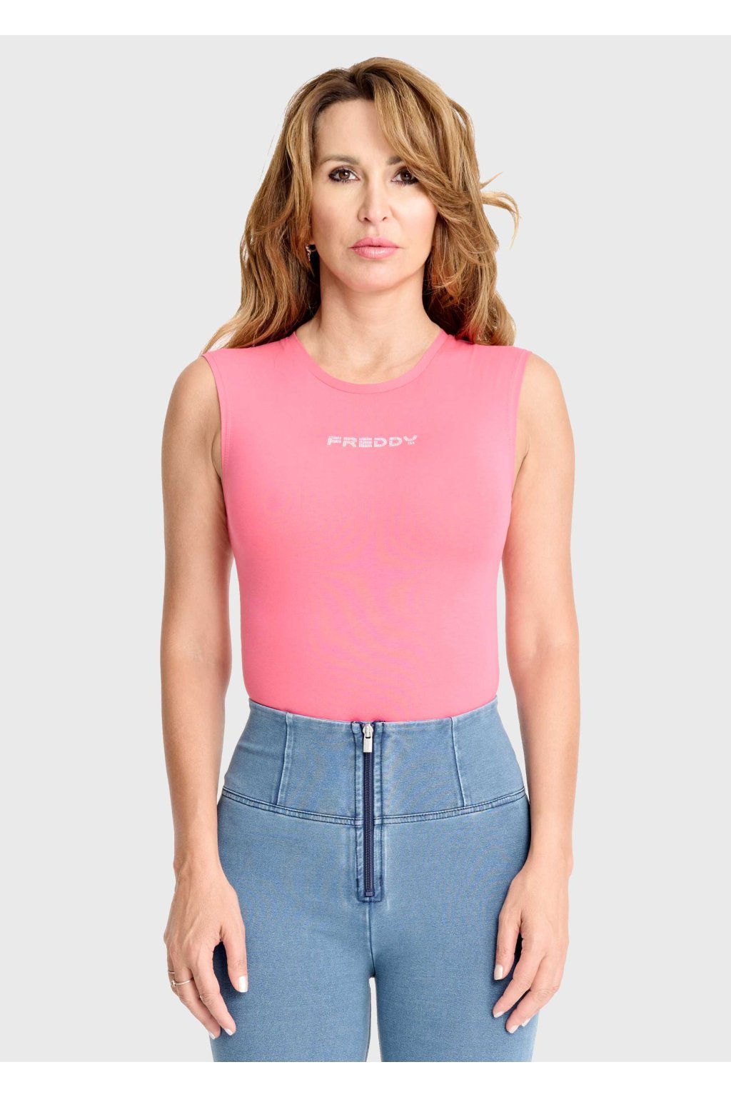 Push-up nohavice z radu WR.UP® z mäkkého strečového džerseja s efektom džínsoviny vyrobené z organickej bavlny pre vzhľad, ktorého cieľom je zvýrazniť Vašu ženskosť. Majú vysoký pás s centrálnym zipsom, ktorý tvaruje pás a bežnú dĺžku. Úzke strihy sa spájajú s elasticitou látky, pričom kopírujú tvar tela bez škrtenia a poskytujú úplnú slobodu pohybu. Odev venovaný zvýrazneniu vašej ženskosti vďaka dizajnu a príjemnému tvarovaciemu efektu FREDDY WR.UP®, ktorá pomáha zvýrazniť siluetu s príjemným push-up efektom. S Freddy sú ženskosť a štýl charakteristickým znakom vášho oblečenia, ktorého cieľom je vylepšiť vaše tvary v úplnej slobode pohybu.