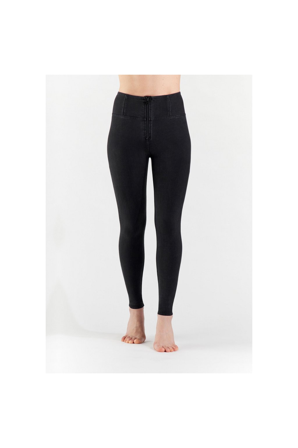 Push-up nohavice z radu WR.UP® z ekologickej strečovej tkaniny s džínsovým efektom vyrobené z TENCEL™ Lyocell, prírodného vlákna získaného z eukalyptovej rastliny vyrobenej udržateľným pestovaním a recyklovaného elastanu. Model má vysoký pás s predným zipsom, normálnu dĺžku a superskinny strih, ktorý podporuje maximálne priľnutie k líniám tela.