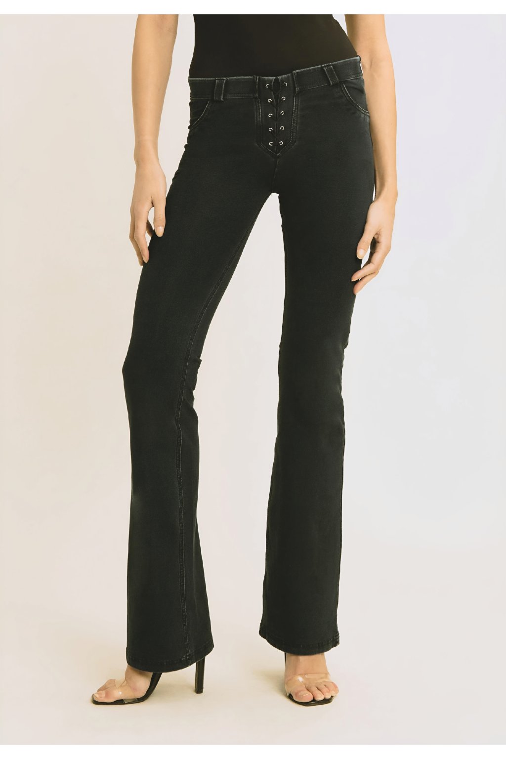 WR.UP® denim nohavice čierne, zvonové, regulárny pás RE(MOVE)