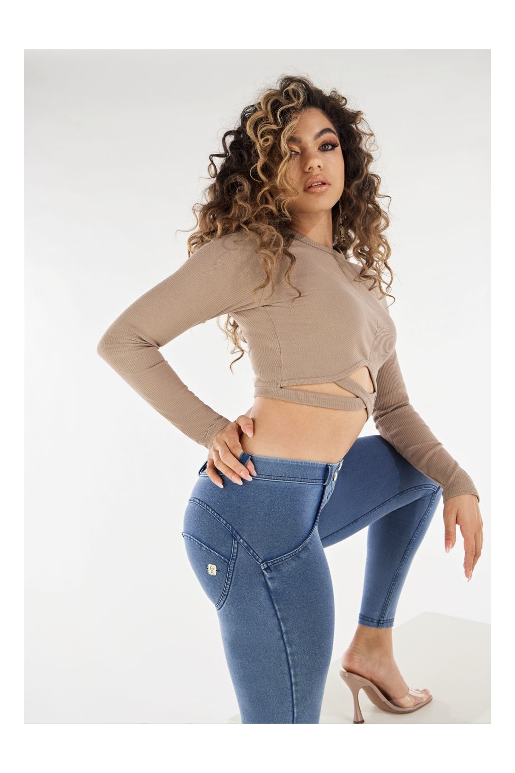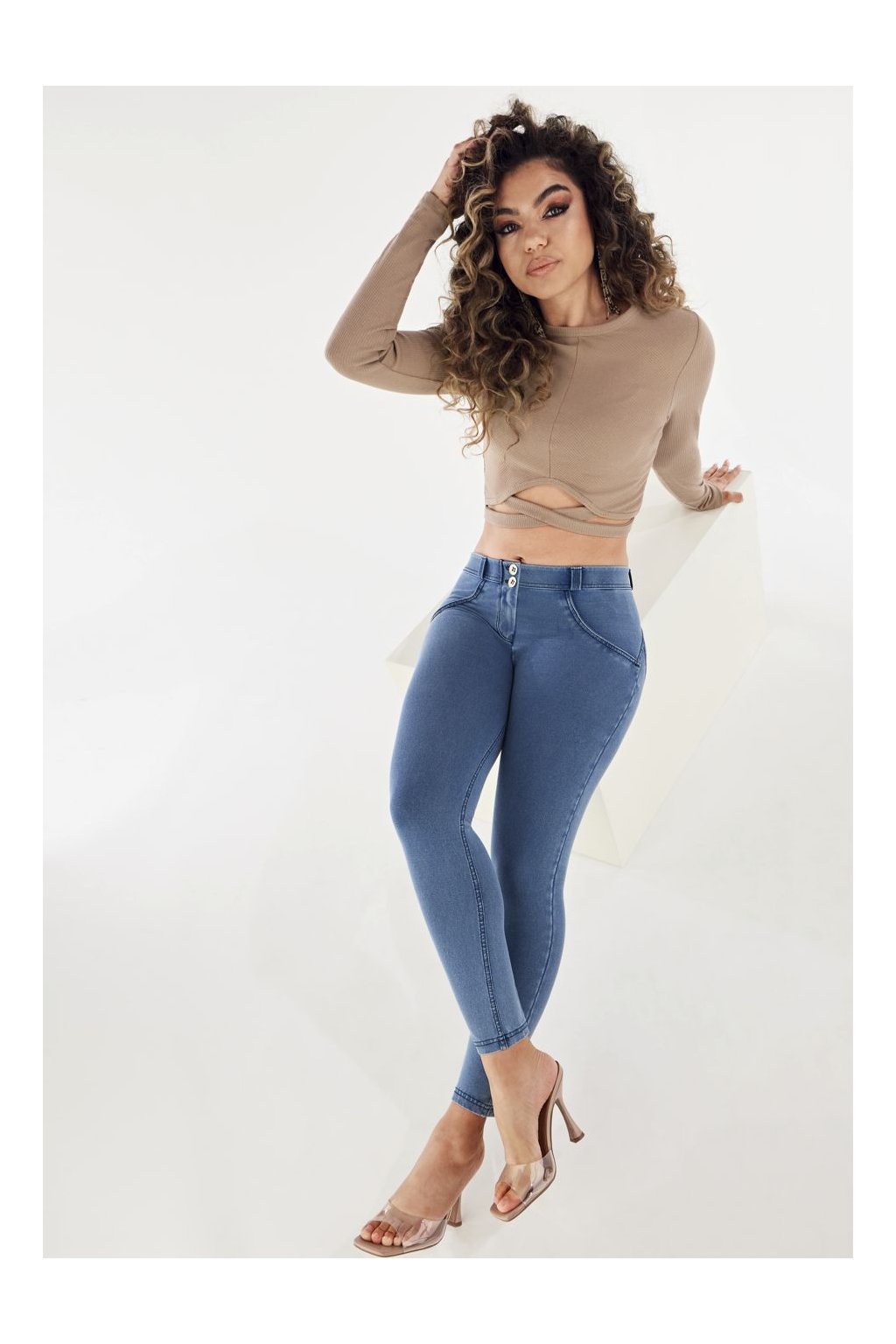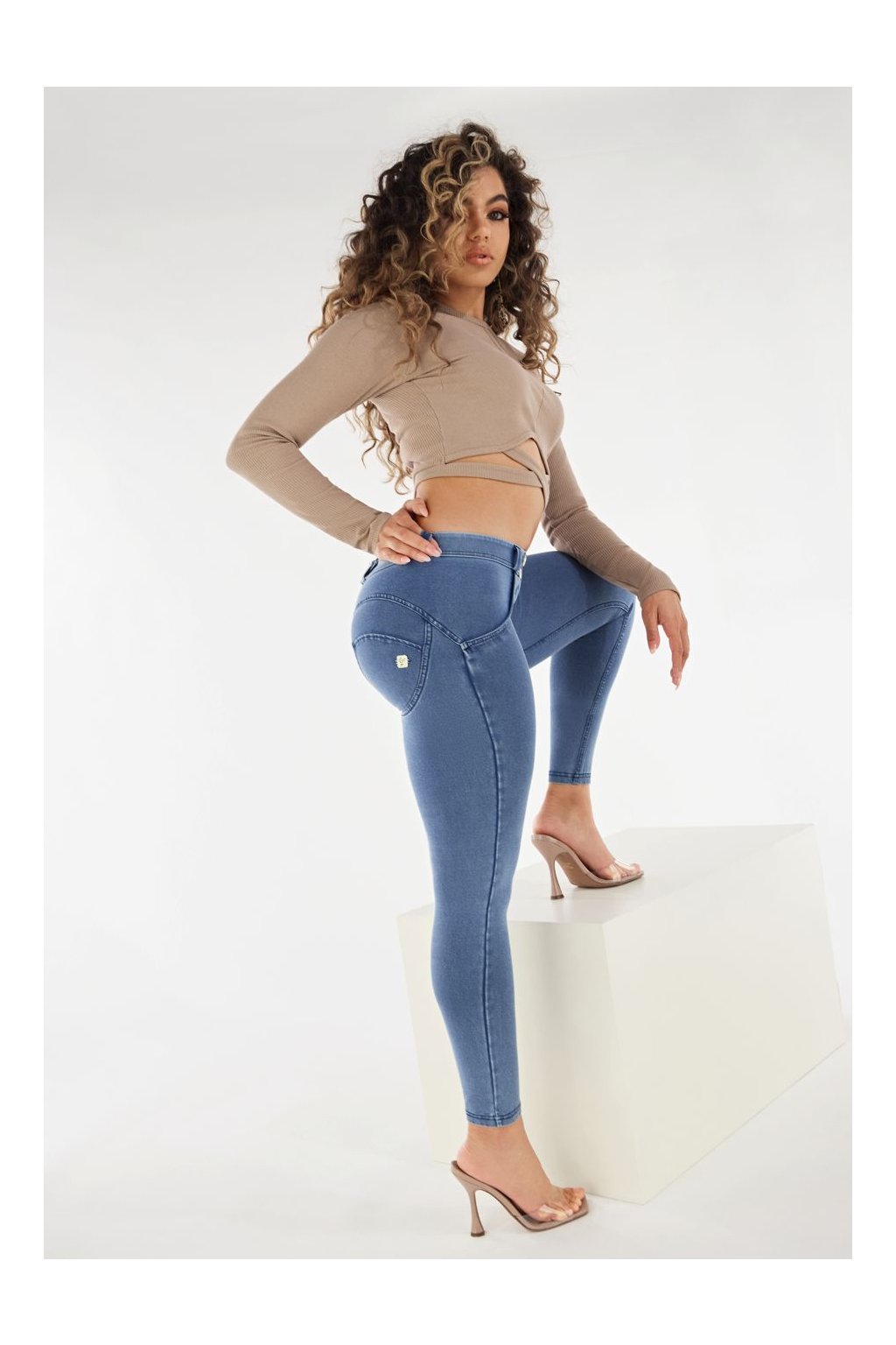 Modelovacie push-up nohavice z radu WR.UP® vyrobené z organickej bavlny a recyklovaného elastanu. Model má bežný regularný pás so zapínaním na dva gombíky, 7/8 dĺžku v oblasti členku, ktorá zoštíhľuje nohu, a superskinny strih, ktorý poskytuje maximálnu priľnavosť. Odev zvýrazňuje Vašu ženskosť vďaka svojmu dizajnu a tvarovaciemu a zdvíhaciemu efektu inovatívnej technológie FREDDY WR.UP®, ktorá pomáha zvýrazniť siluetu.