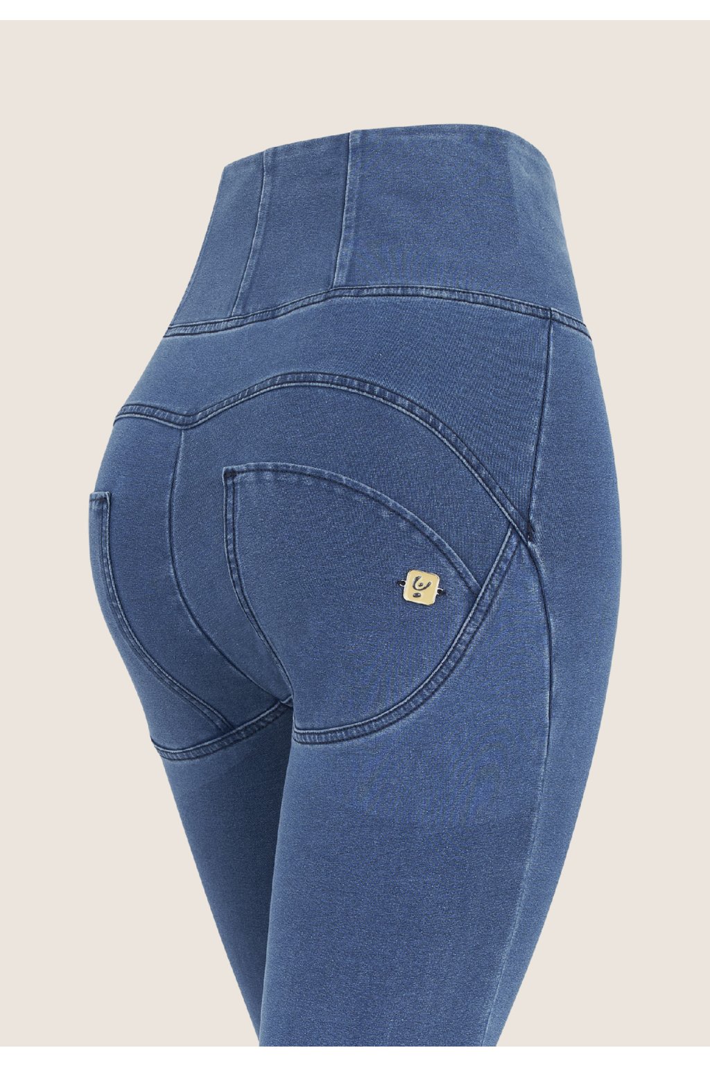 Push-up džínsy z radu WR.UP® z elastického džerseja s denimovým efektom vyrobené z organickej bavlny a recyklovaného elastanu. Tento model má veľmi vysoký pás so stredovým zipsom, superskinny strih pre maximálne priľnutie ku kontúram tela a pravidelnú dĺžku. Kontúry tela zvýraznené vzorom, ktorý obopína pás, sú ešte viac zvýraznené modelujúcim efektom technológie WR.UP® patentovanej spoločnosťou Freddy, ktorá zvýrazňuje postavu vďaka jedinečnému systému vsadiek a švov, ktoré zvýrazňujú postavu a podporujú krivky. Sú ideálne na outfity, ktoré prinášajú ženskosť na každú príležitosť, a zároveň sú nádherne pohodlné.