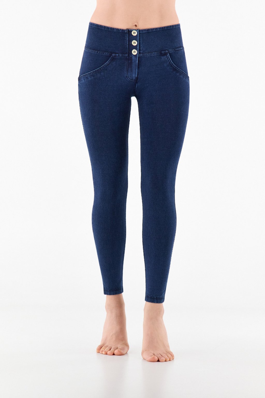Push-up FREDDY z radu WR.UP® z pohodlného strečového džerseja s efektom denimu vyrobeného z organickej bavlny a recyklovaného elastanu: Freddy je udržateľná voľba na zvýraznenie vašej ženskosti v súlade s láskou k našej planéte. Model má klasickú dĺžku a stredný(MID WAIST) pás s predným zapínaním na tri gombíky. Odev venovaný slobode pohybu a vyzdvihnutiu ženskosti, v ktorom sa úzky strih, ktorý poskytuje príjemné priľnutie k líniám tela, spája s tvarujúcim a liftingovým efektom inovatívnej technológie WR.UP® patentovanej Freddym, ktorá pomáha vylepšiť silueta s príjemným push-up efektom vďaka špeciálnemu systému.