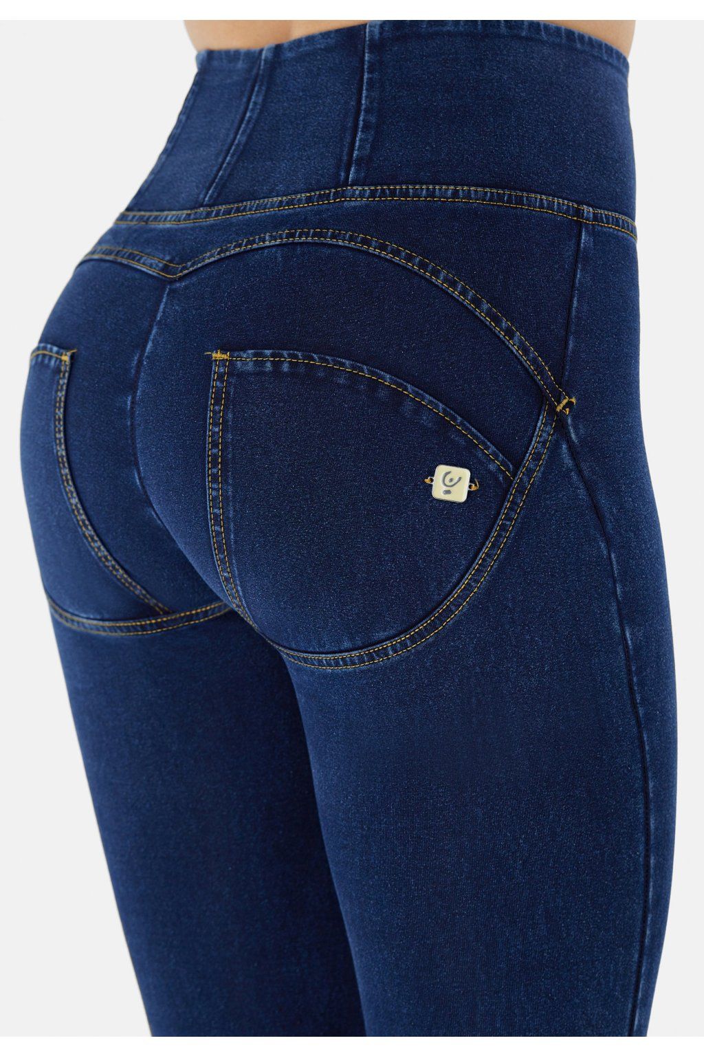 WR.UP® denim nohavice tmavomodré so žltým šitím, vysoký pás RE(MOVE), WRUP2HC002ORG, J0Y