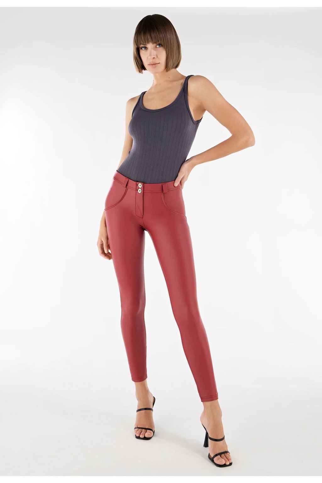 Nohavice WR.UP® po členky z umelej kože s pravidelným pásom. Super skinny strih obopína siluetu, vďaka čomu sú neuveriteľne pohodlné. Patentovaná technológia WR.UP® značky Freddy potom zvýrazní a podporí vaše krivky. Špeciálne švy a ultrajemné silikónové vložky vytvárajú na tých správnych miestach zdvíhací efekt, ktorý prirodzene a harmonicky zvýrazní zmyselnosť vašej postavy.