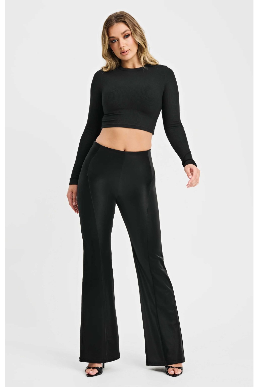 WR.UP® koženkové nohavice, čierne, zvonové, vysoký pás.