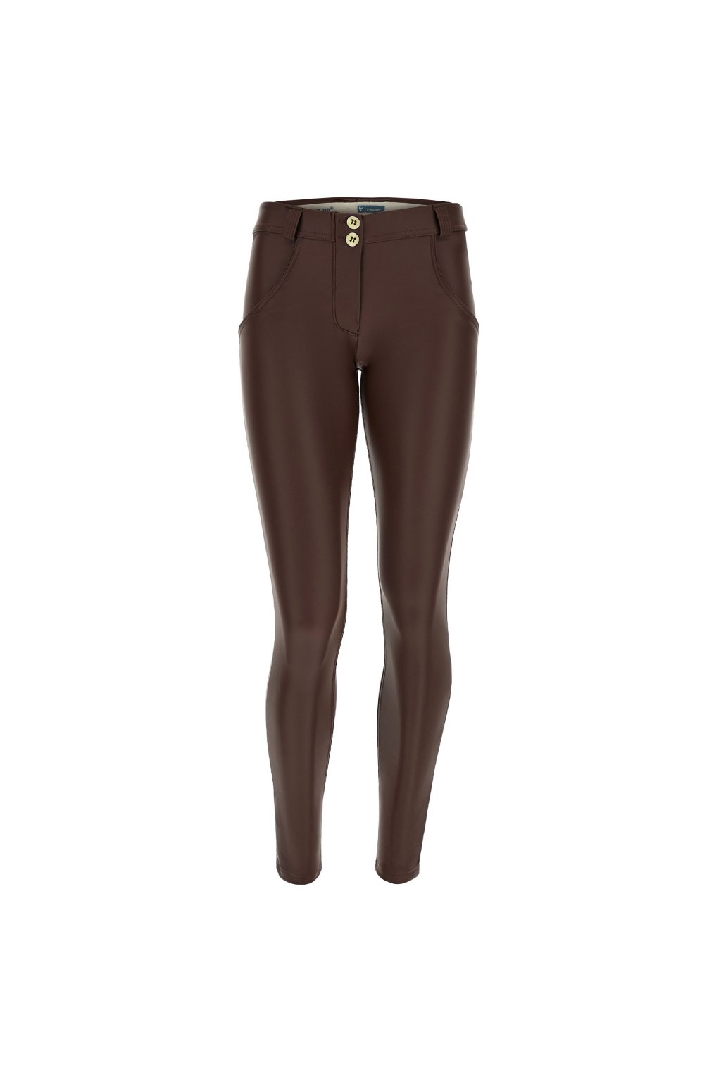 WR.UP® koženkové nohavice hnedé, regular pás RE(MOVE).