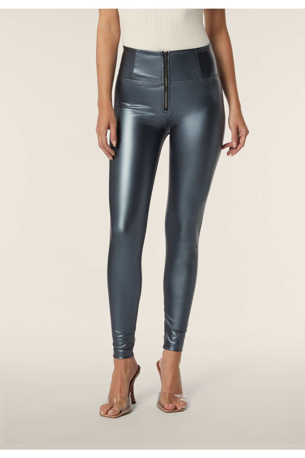 WR.UP® koženkové nohavice modré s vysokým pásom a lesklým efektom, WRUP4HF471, G108