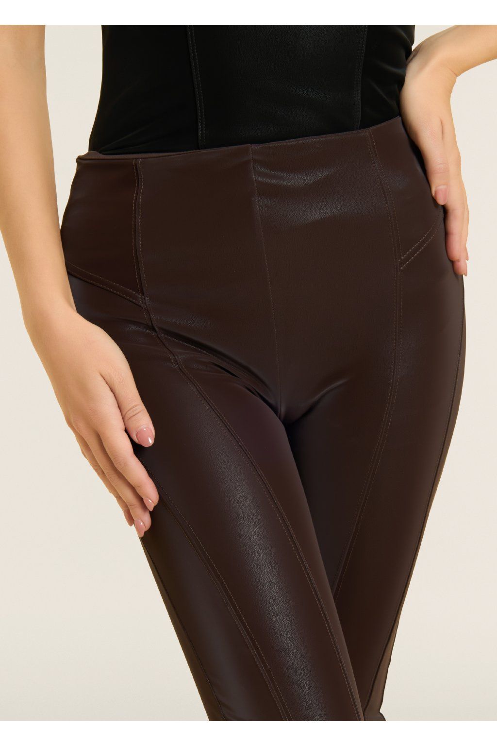 WR.UP® koženkové nohavice s vysokým pásom, super skinny strih, semišový efekt.