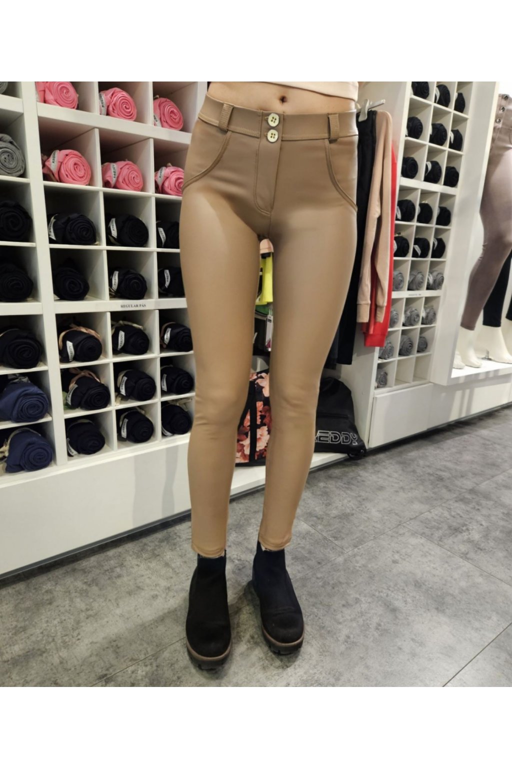 Odev navrhnutý tak, aby zvýraznil Vašu ženskosť vďaka nespornému šarmu imitácie kože a veľkolepému tvarovaciemu efektu Freddyho patentovanej technológie WR.UP®, ktorá zvýrazňuje siluetu a dáva modelovací a liftingový efekt pomocou špeciálneho systému vsadenia a švov.