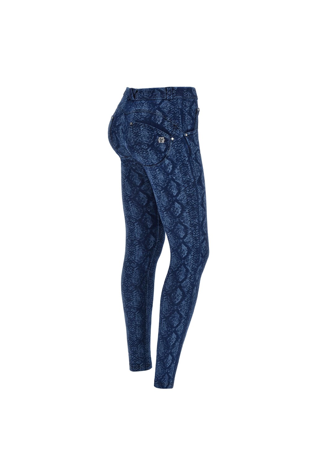Tvarujúce džínsy z línie WR.UP® z elastického džínsového materiálu, ktorý je potlačený laserom s hadím vzorom.