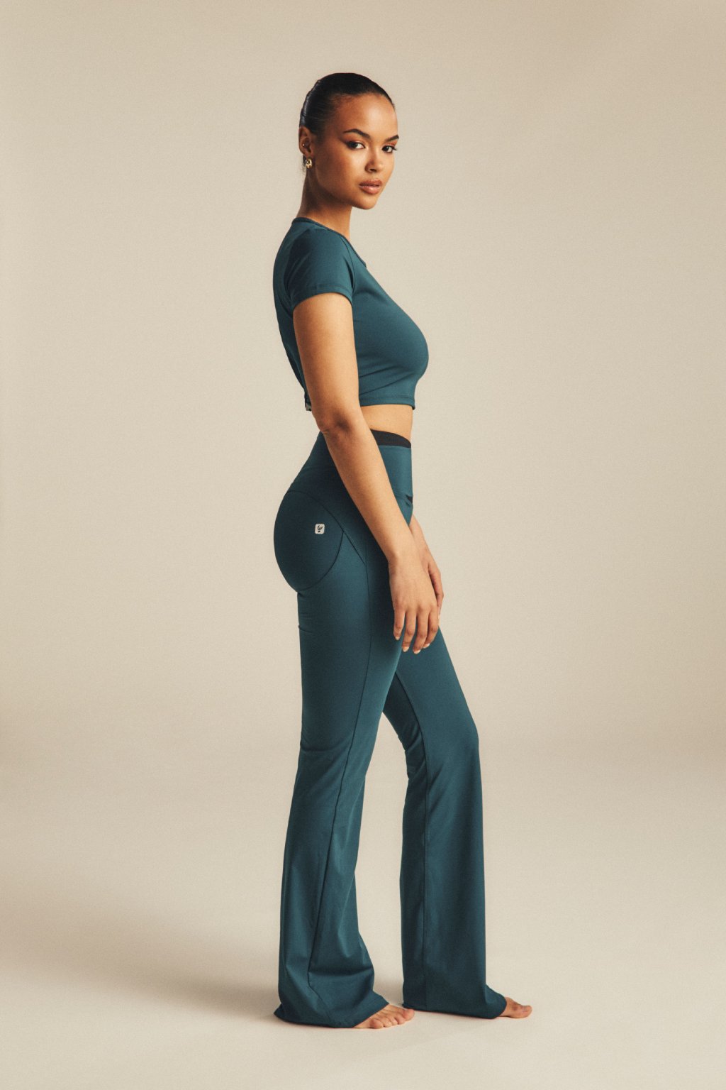 WRUP® CORE Tmavo zelené športové legíny emana, zvonové, vysokým pásom, WRUPY11HS2512REC, V92N