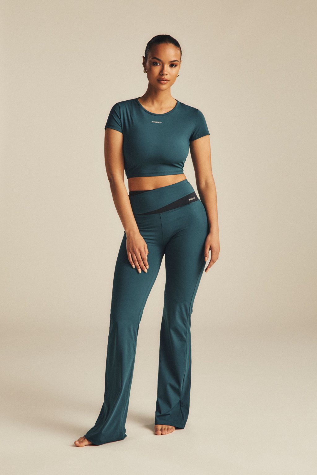 WRUP® CORE Tmavo zelené športové legíny emana, zvonové, vysokým pásom.